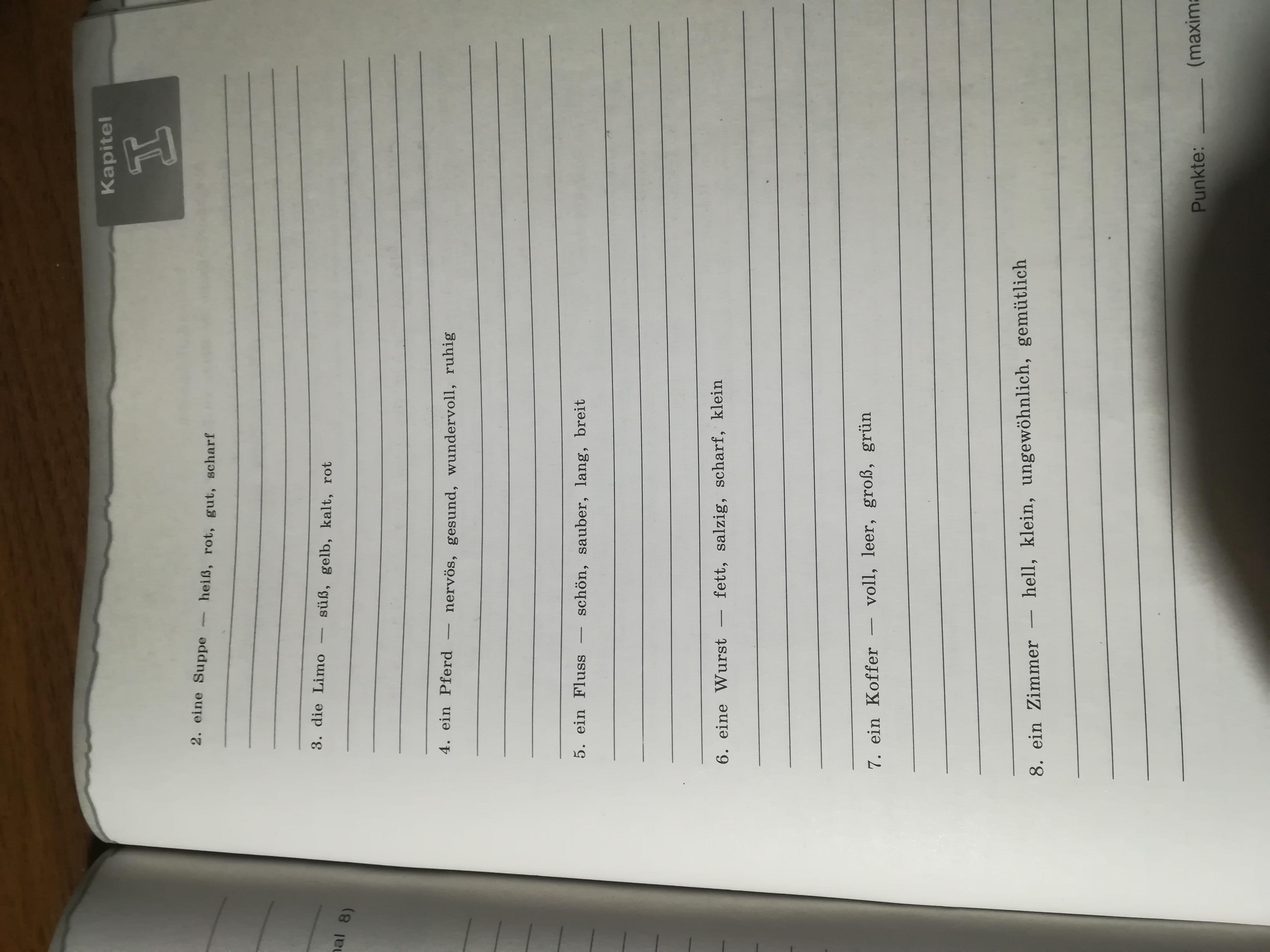 2)Eine heiße suppe, eine rote suppe, eine gute suppe, eine scharfe suppe
