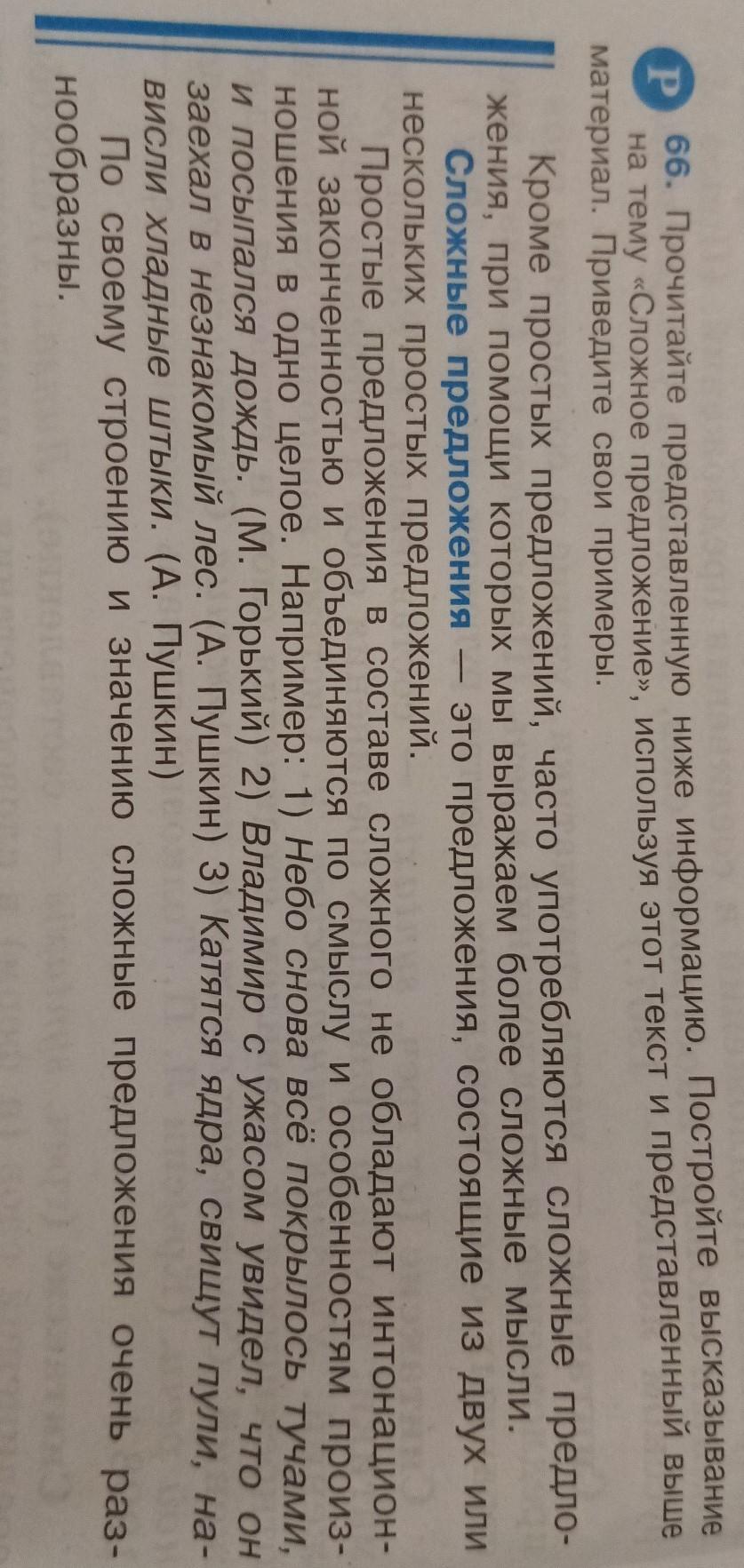 Насчет высказывания я не смогу написать , могу только примеры сложных предложений привести :