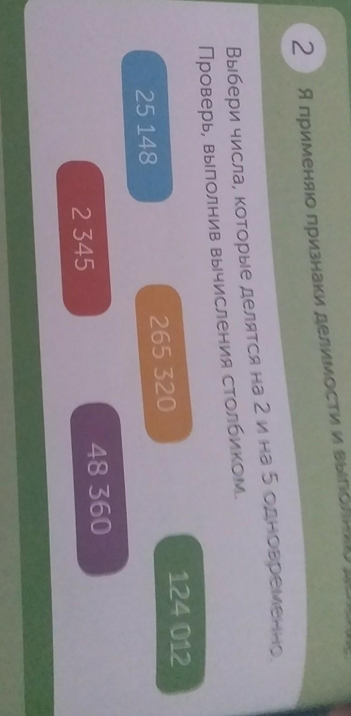 на 2 делятся все чётные числа. они должны оканчиваться на цифры 0, 2, 4 , 6, 8.