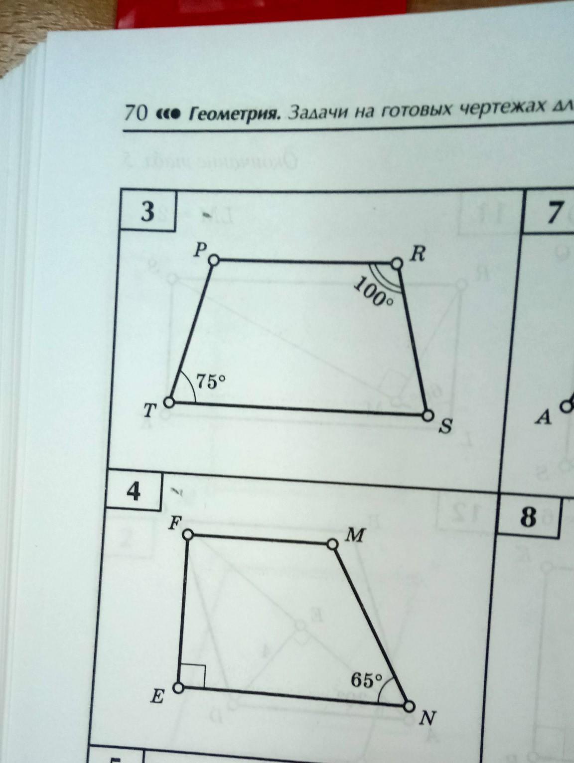 Это 2 трапеции. 1-равнобедренная, а 2-прямоугольная. Эти 2 задачи решаются по одной т.(теореме), что сума углов прилегащих к боковим сторонам равна 180°. Тогда для первой задачи: