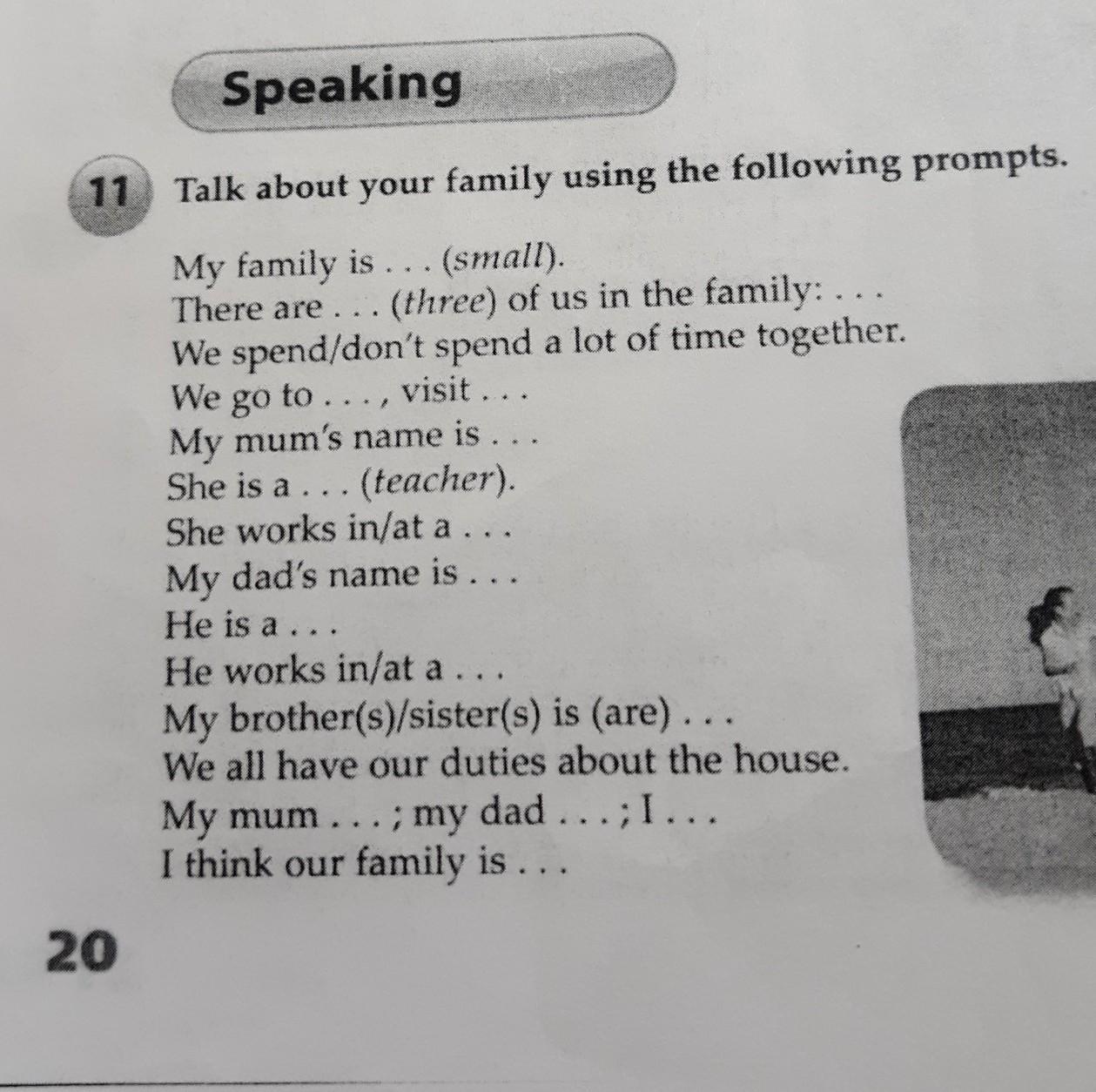 My family is small. There are four of us in the family: my mother, my father, my elder brother and I. We don't spend a lot of time together but sometimes we go to the cinema or visit restaurants together. My mum's name is Lera, she is a housewife. She doesn't work. My dad's name is Dmitry, he's a doctor. He works in a hospital. My brother is a student. We all have our duties about the house: my mum cooks for us, dad fixes anything that gets broken, I wash the dishes and my brother does the cleaning. I think our family is the best family in the world.
