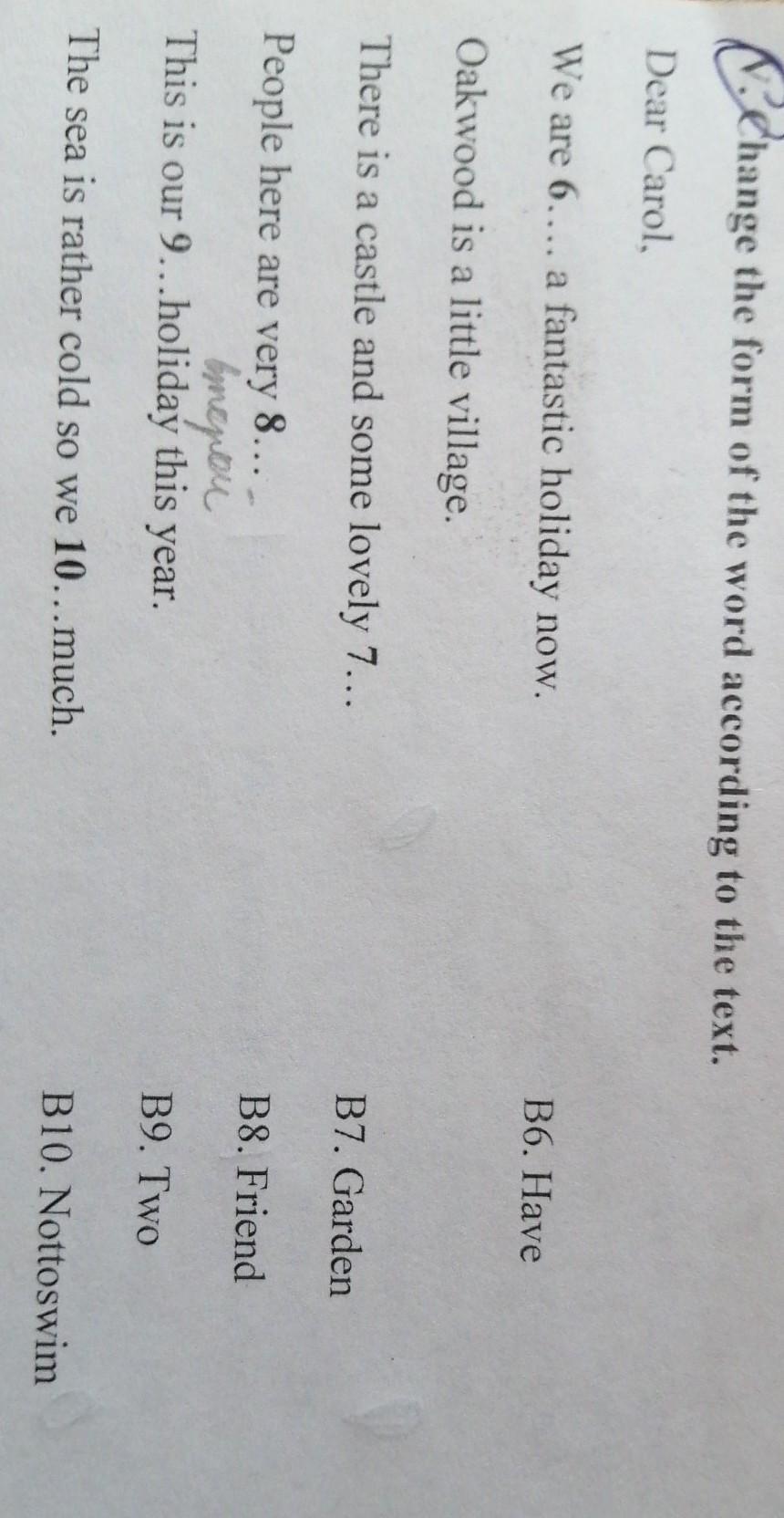 We are having a fantastic holiday now.Oakwood is a little village.There is a castle and some lovely gardens. People here are very friendly. This is our second holiday this year. The sea is rather cold so we don't swim much.