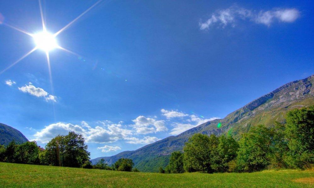 2 картинка. der Wind weht nicht. Alles ist grun.(зелёный с двумя точками с верху). Es ist warm. der Himmel ist blau. die Sonne scheit sehr hell. Es ist sonnig.