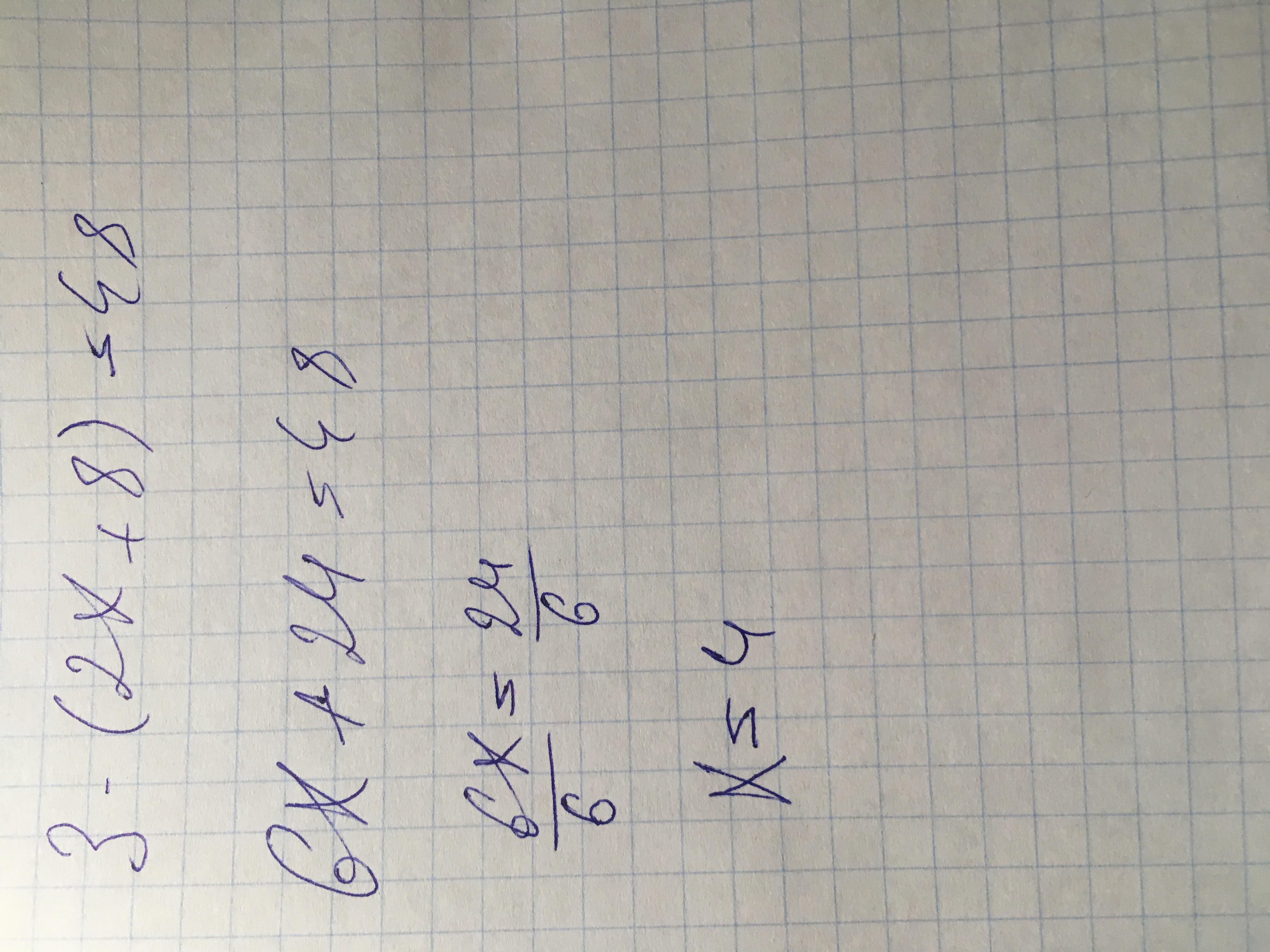 3×(2x+8)=48; 2х+8=48:3; 2х+8=16; 2х=16-8; 2х=8; х=8:2; х=4