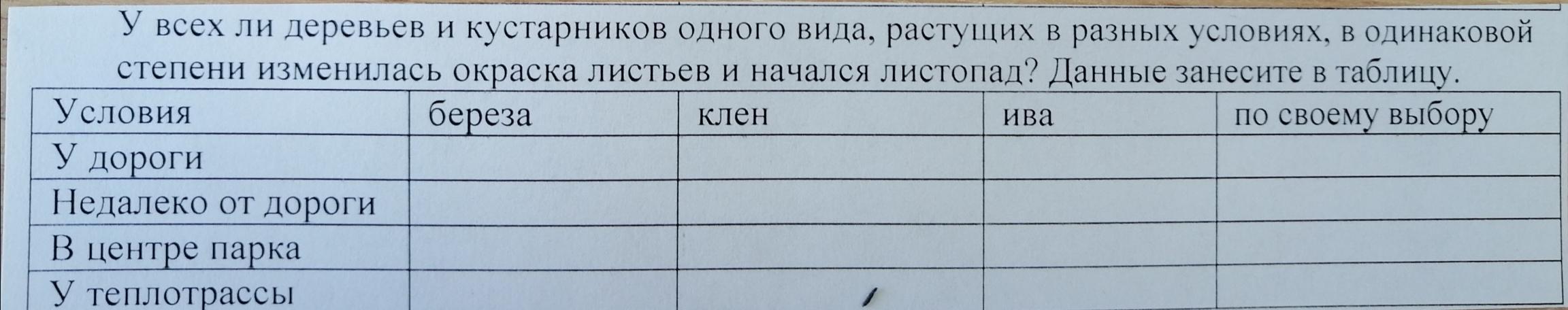 Помогите заполнить таблицу (как разные виды деревьев готовятся к зиме в определенных местах):