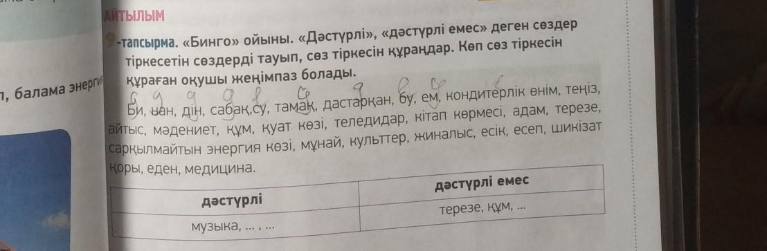 дәстүрлі емес- нан,сабақ,су,бу ,ем, кондитерлік өнім,теңіз,құм,қуат көзі,теледидар, кітап көрмесі,адам,терезе,сарқылмайтын энергия көзі,культтер,мұнай,есеп,есік,жиналыс,шикізат қоры,еден,медицина