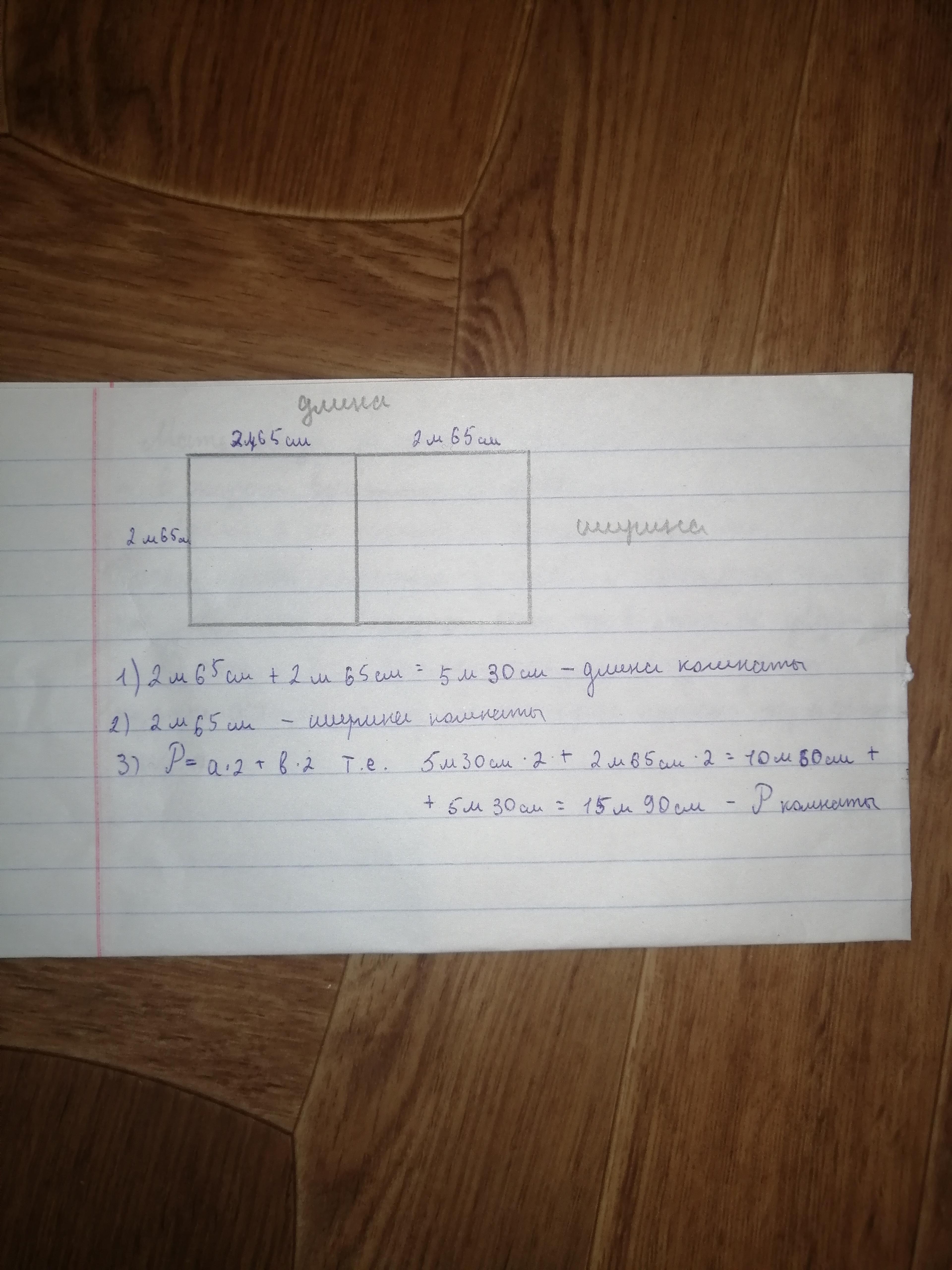 1. Ширина равна стороне квадрата (2 м 65 см).