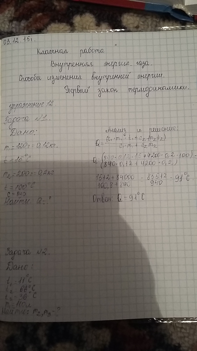В стеклянный стакан массой 120 г, имеющий температуру 15 градусов цельсия, налили 200 г воды, температура которой 100 градусов цельсия. При какой температуре установится тепловое равновесие? Обменом энергии с окружающей средой пренебречь.