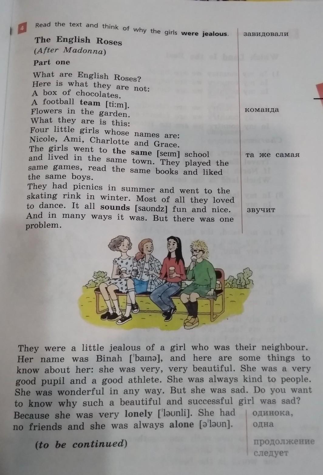Что такое английские розы? Вот чем они не являются: коробка конфет. Футбольная команда [ти: м]. Цветы в саду. Вот что они: Четыре маленькие девочки по имени Николь, Ами, Шарлотта и Грейс. Девочки ходили в одну и ту же школу и жили в одном городе. Они играли в одни и те же игры, читали одни и те же книги и любили одинаковых мальчиков. Летом они устраивали пикники, а зимой катались на катке. Больше всего они любили танцевать. Все это звучит [саундз] весело и приятно. И во многом это было. Но была одна проблема.