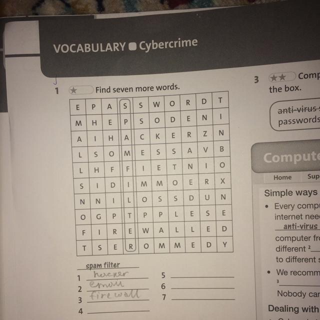 Password, Firewall, Hacker, Virus, Spam, Inbox,