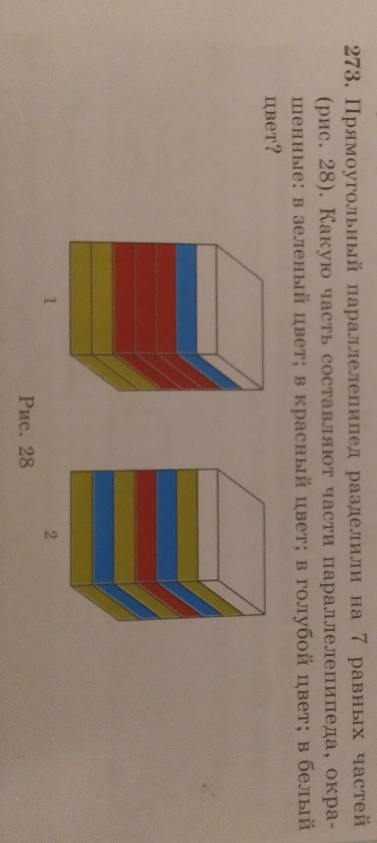 (рис. 28). Какую часть составляют части параллелепипеда, окра-