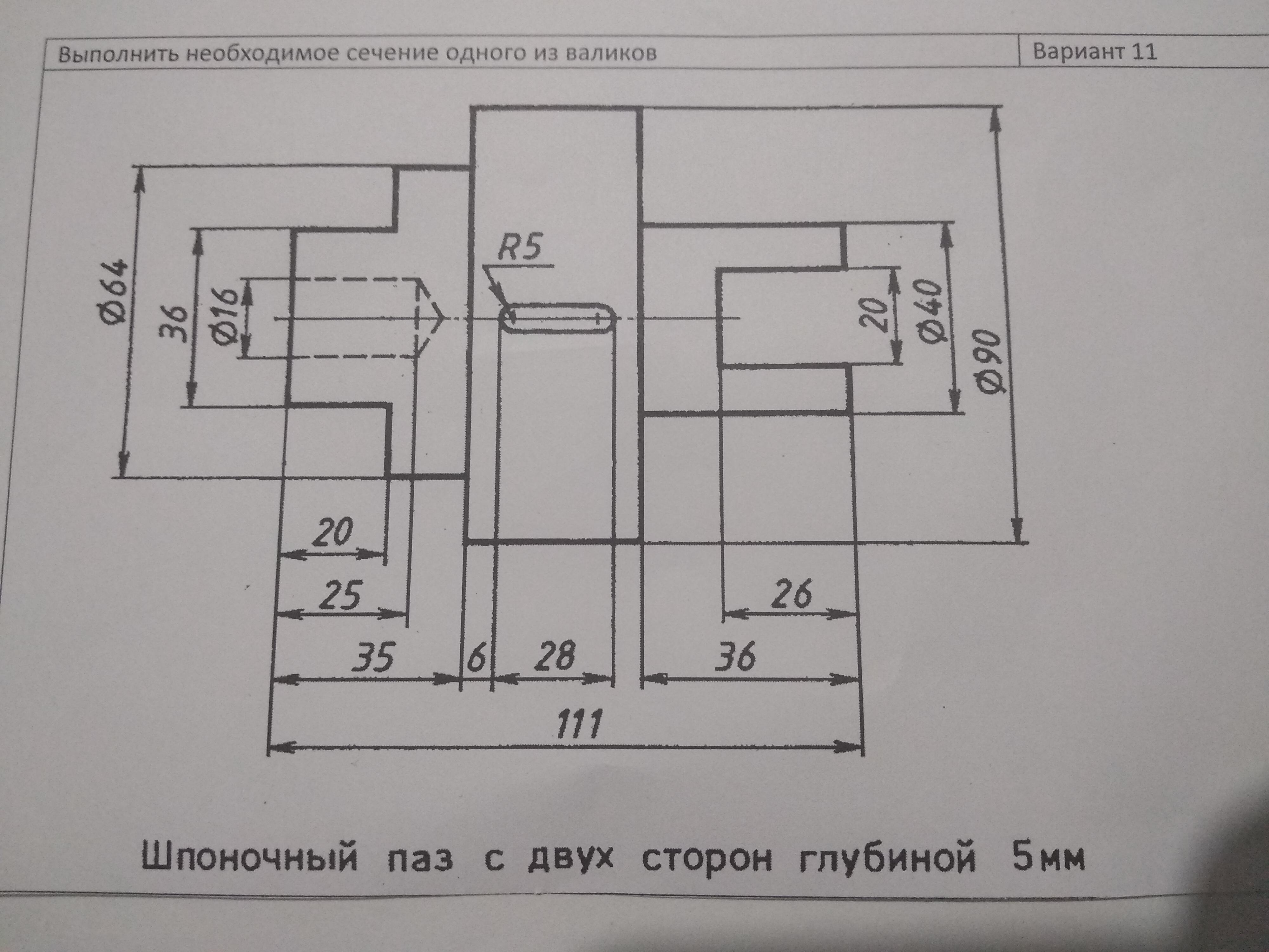 Помогите пожалуйста, до завтра нужно выполнить чертёж. Выполнить необходимое сечение одного из валиков.