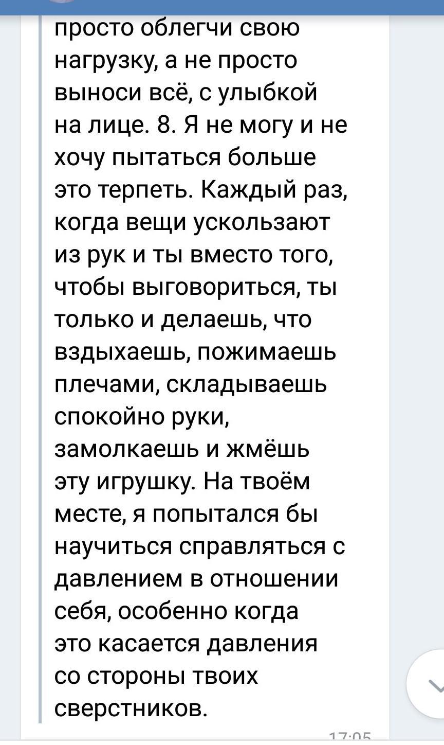 just lighten your load, and don't just take it all out with a smile on your face. 8. I cannot and do not want to try to endure it anymore. Each time when things slip away from your hands and instead of speaking out, you just do what you sigh, shrug, fold your hands quietly, shut up and shake this toy. In your place, I would try to learn to cope with pressure on myself, especially when it comes to pressure from the outside! your peers.
