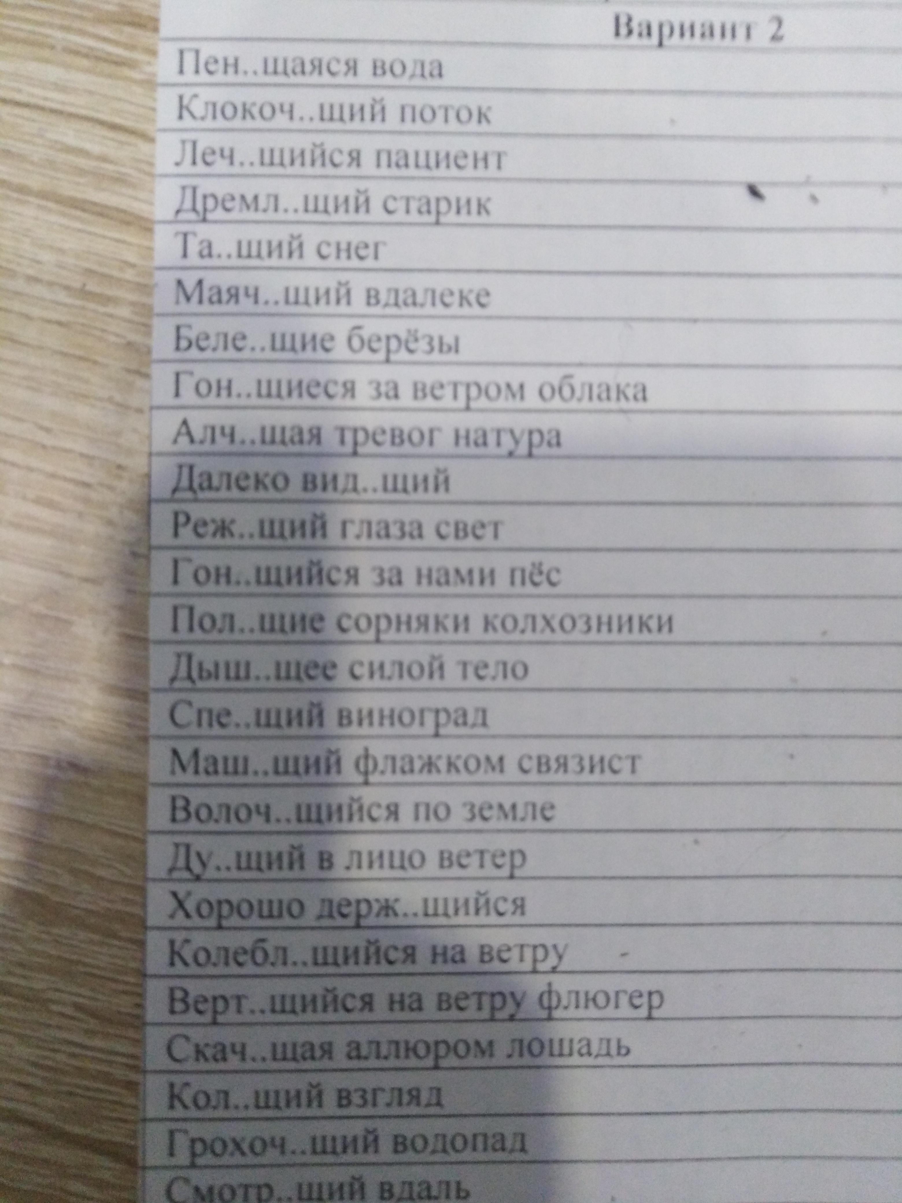 Пенящаяся, клокочущий, лечащийся, дремлющий, тающий, маячащий, белеющие, гонящиеся, алчащая, видящий, режущий, гонящийся, полющие, дышащее, спеющий, машущий, волочащийся, дующий, держущийся, колеблющийся, вертящийся, скачущая, колющий, грохочущий, смотрящий