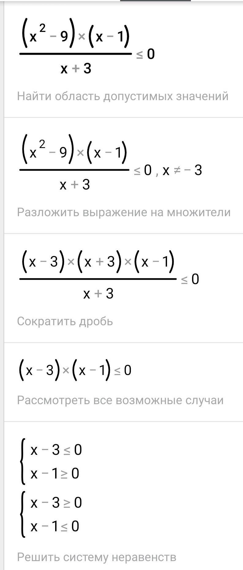 Дальше из скобок у тебя получаются корни х1=1 и х2=3 и отмечаешь это на координатной прямой (не забудь записать что х не равен -3)
