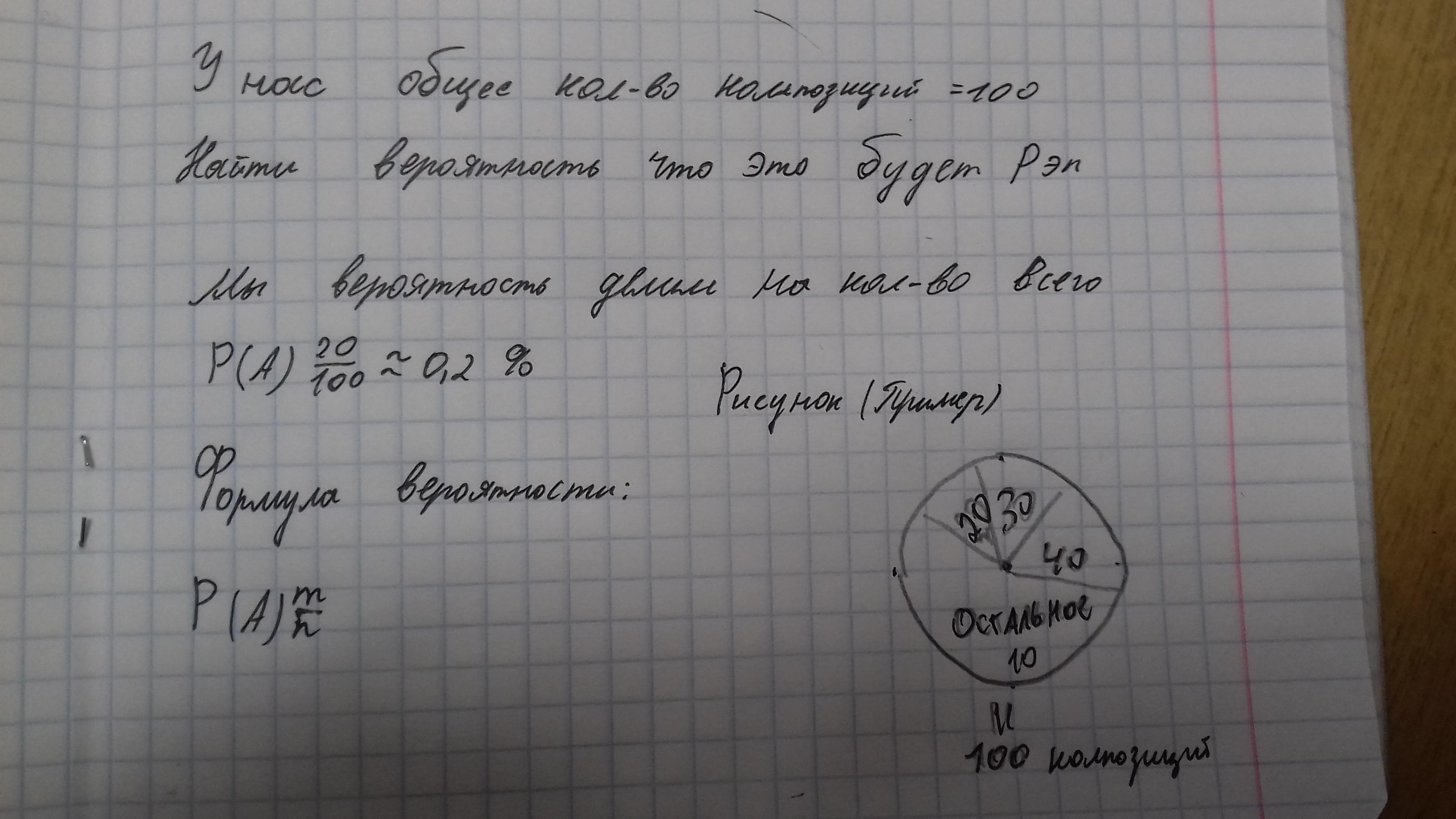 20 рэп из 100 всего, значит вероятность 20/100=0.2