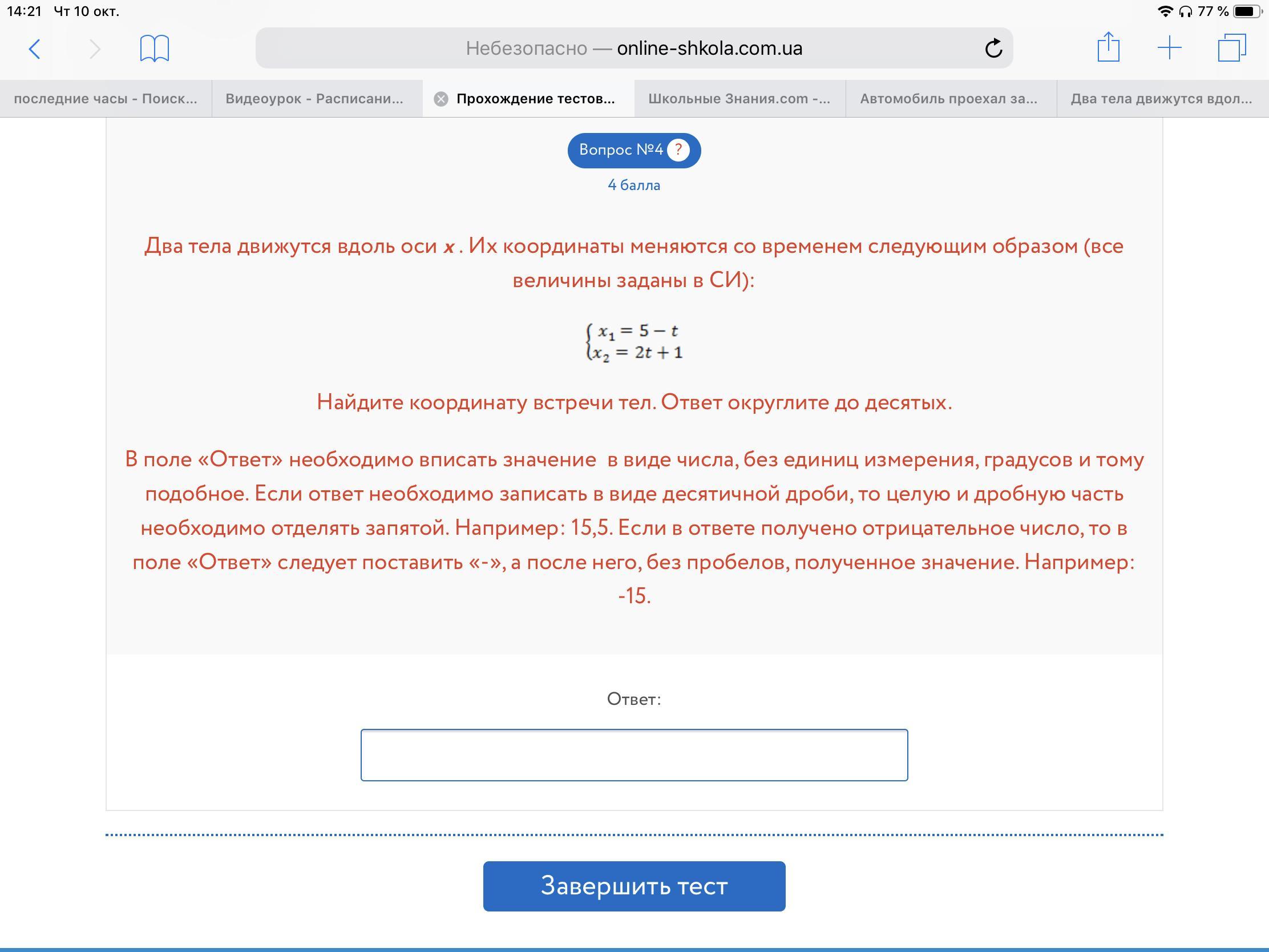 Ответ: координата встречи 3 2/3=3,666666...≈3,7.