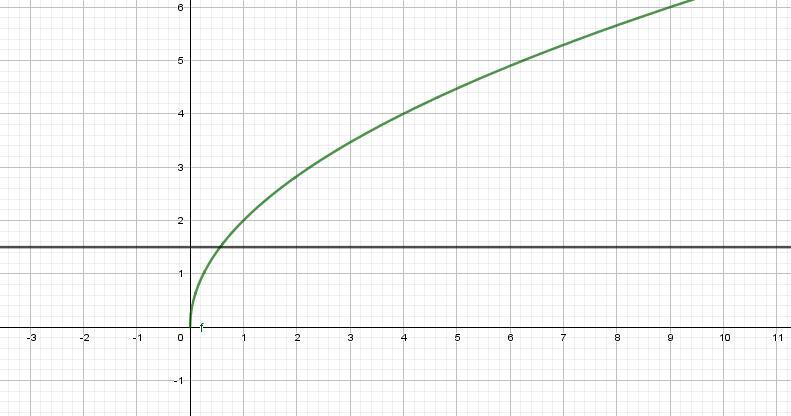Графики пересекаются в точке (0.5625; 1.5), где x = 0.5625 - корень данного уравнения