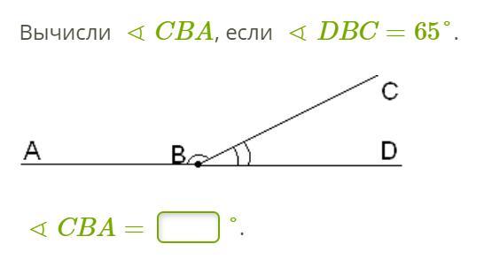 Если так, то тогда углы СВА и ДВС смежные, их сумма = 180°, из этого следует, что угол СВА = 180° - уголДВС = 180° - 65° = 115°