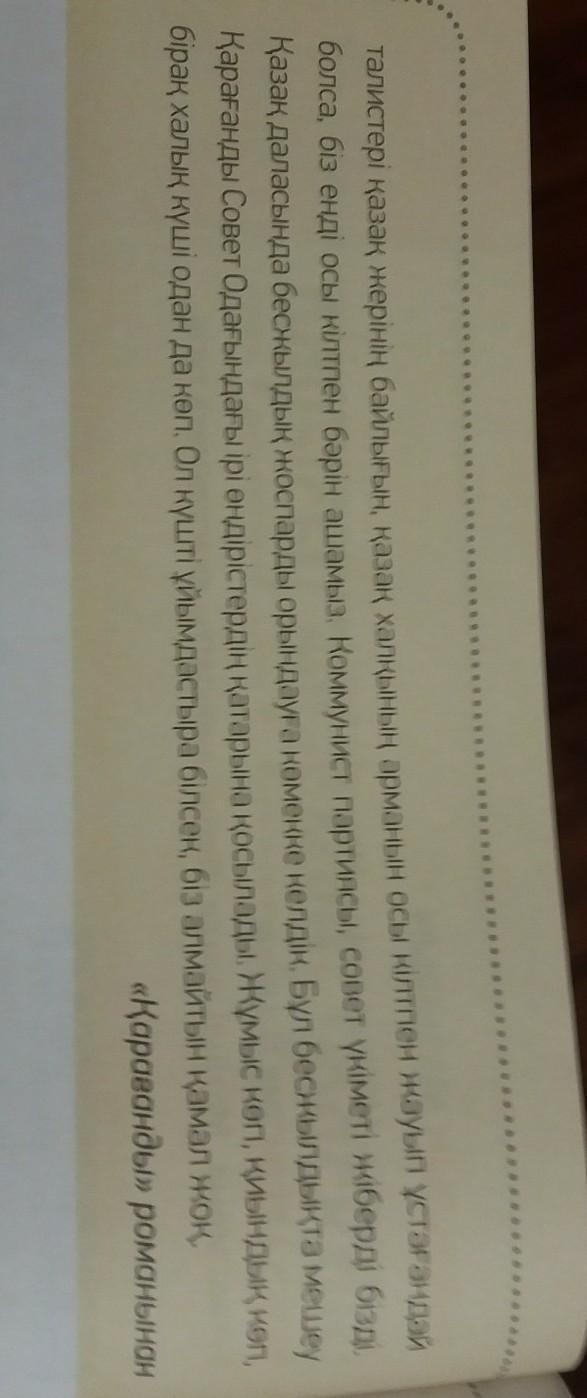 Мы теперь с этим ключом открываем все, если наши таланты закрывают богатства казахской земли, мечты народа совхоза. Коммунистическая партия, советское правительство бюд. В казахской степи мы решили выполнить пятилетний план. В Карагандинской области из-за метели закрыли дороги по всем направлениям. Работ много, трудностей нет, но силы населения еще больше. Он организован к роману " каравана»