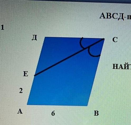 Угол ЕСД=СЕД как накрест лежащие при пересечении АД//ВС (по определению) секущей СЕ. Так как угол ДСЕ=ЕСВ по условию, то угол ДСЕ=ДЕС, следовательно треугольник ЕДС-равнобедренный, а значит ДС=ДЕ=6. АД= ДЕ+АЕ=2+6=8.