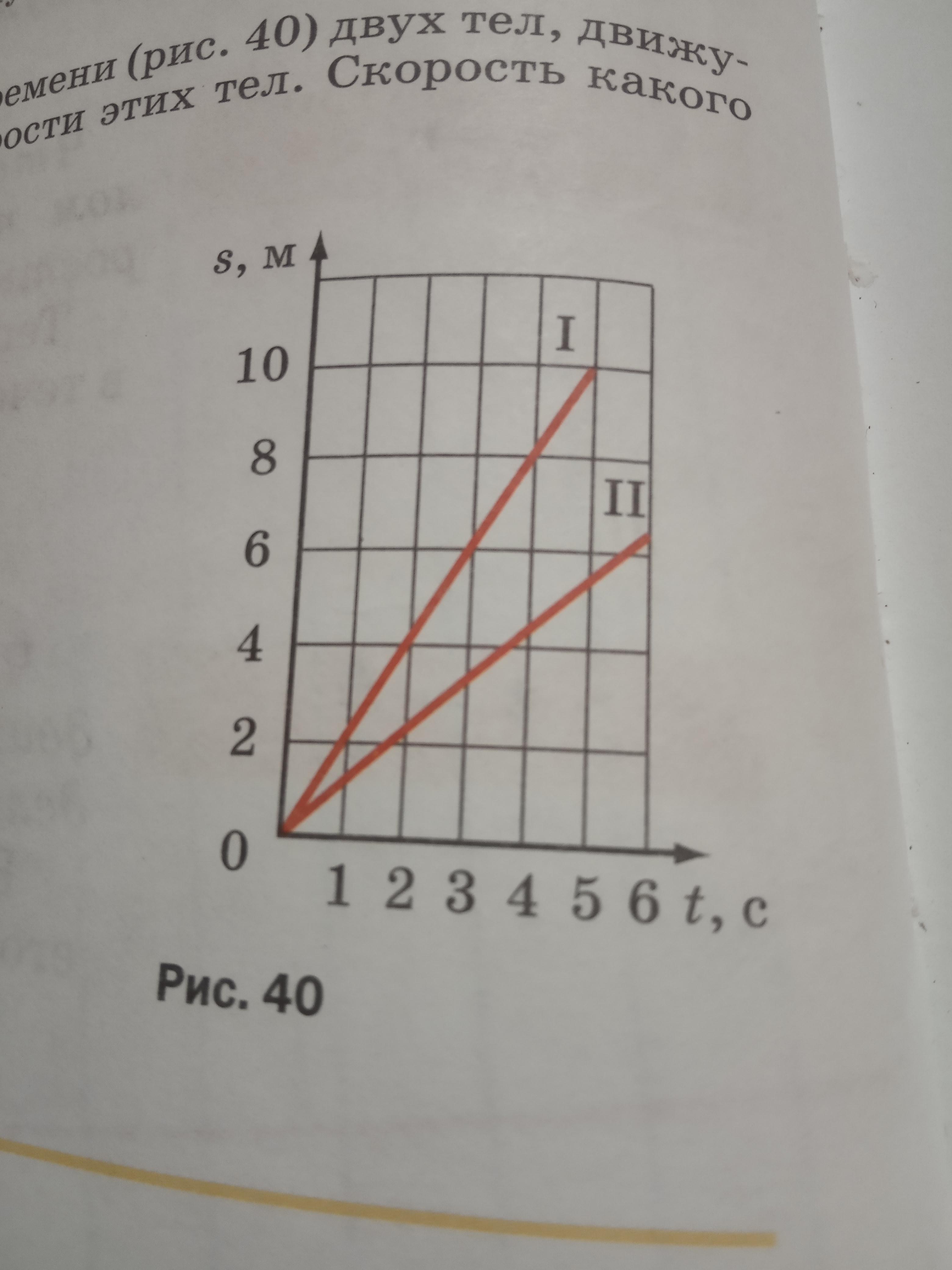 По графикам зависимости пути от времени двух тел, движущихся равномерно, определите скорости этих тел. Скорость какого тела больше?