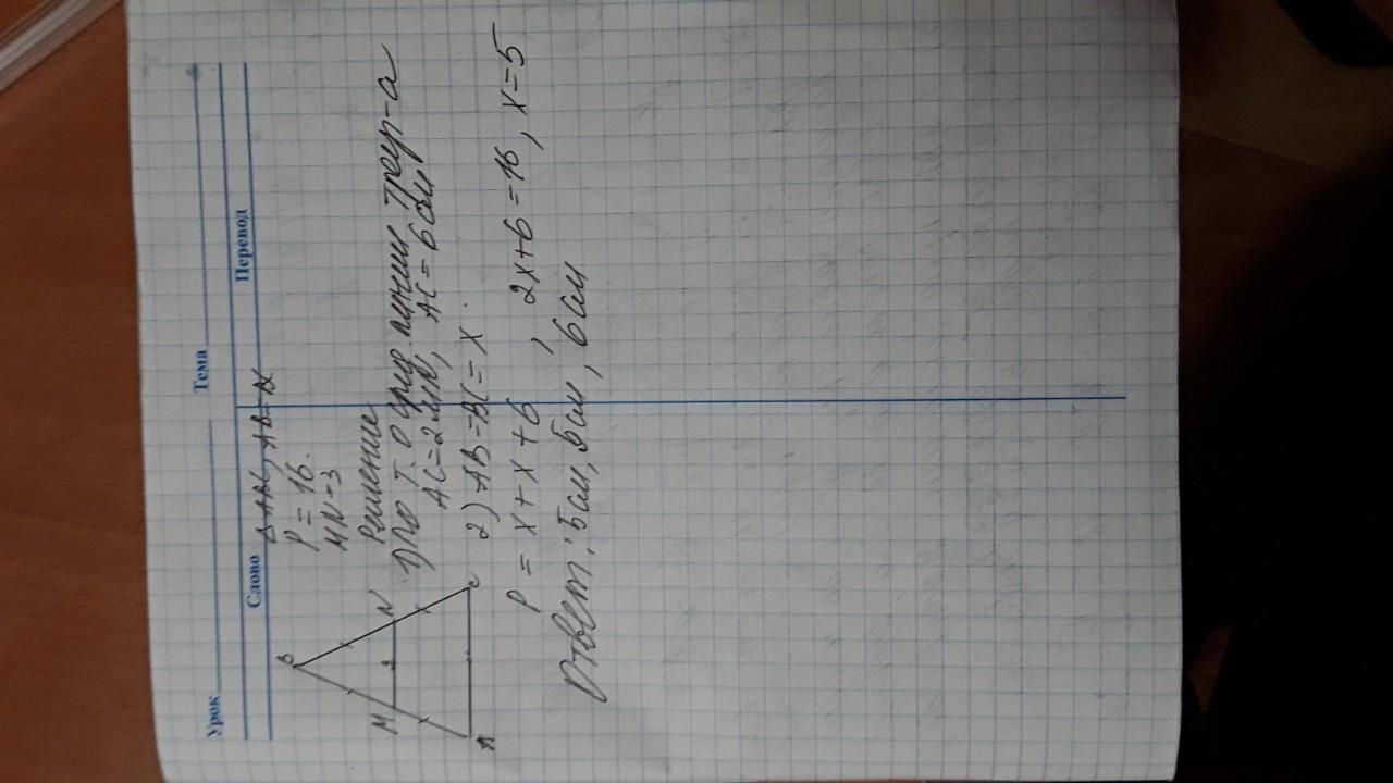 Средняя линия равнобедренного треугольника, параллельна основанию, равно 3 см. Найдите стороны треугольника, если его периметр равен 16 см