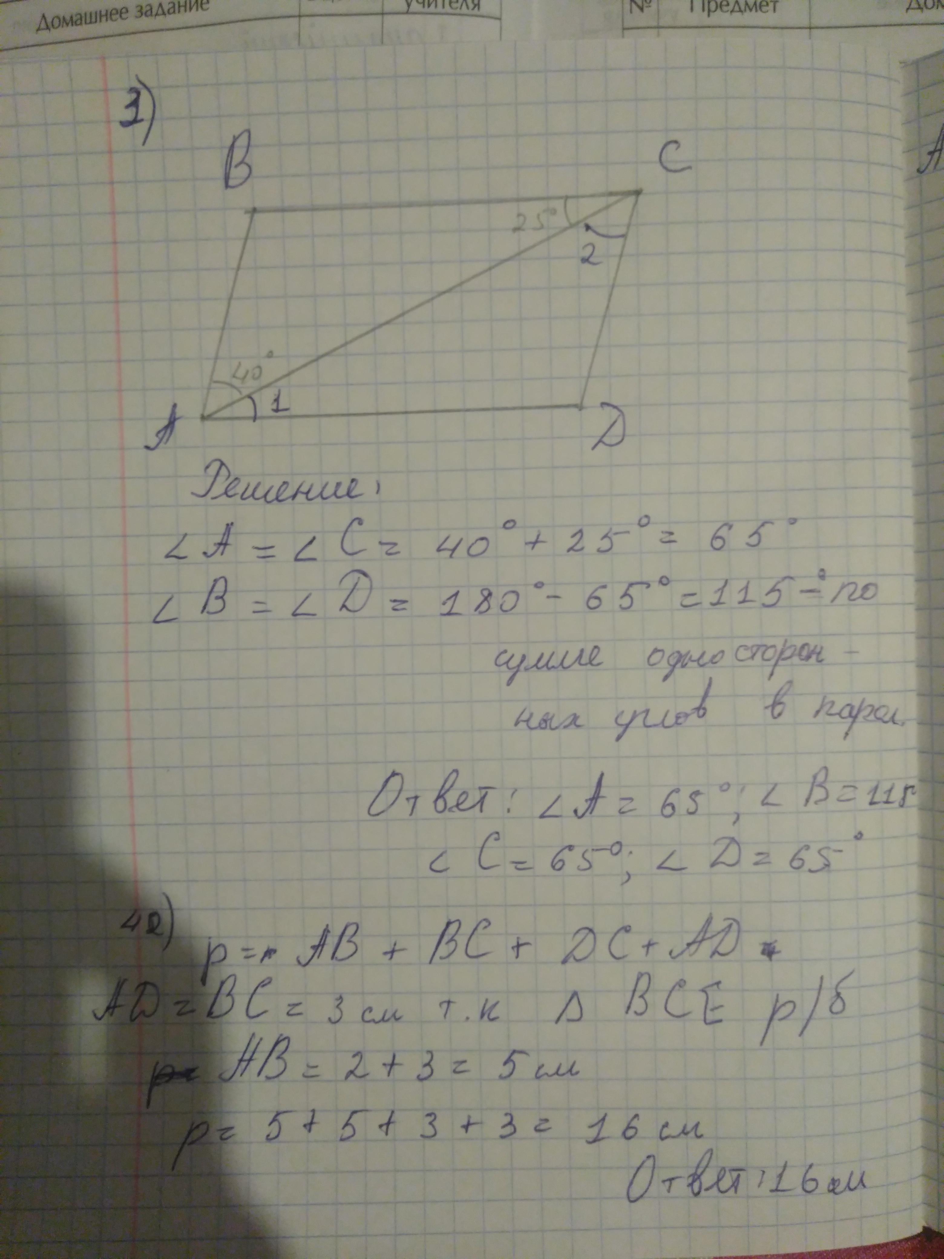 Ответ:3)угол A равен углу C равен 65 градусов ;4)16 см ;5)ADравняется 10 см