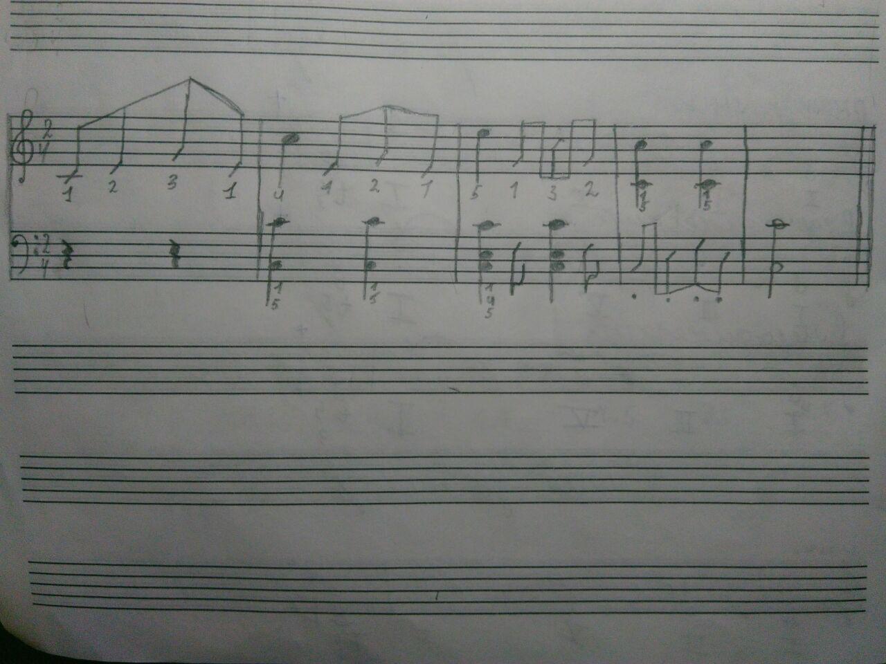 И пожалуйста поставь оценку и если не сложно напиши все минусы(если токовые имеются), под минусами я имею ввиду то что например непонятно что на фотке или некрасиво написал ноту. Её точно понятно потому-что я расписал ВСЮ повторюсь ВСЮ МЕЛОДИЮ.