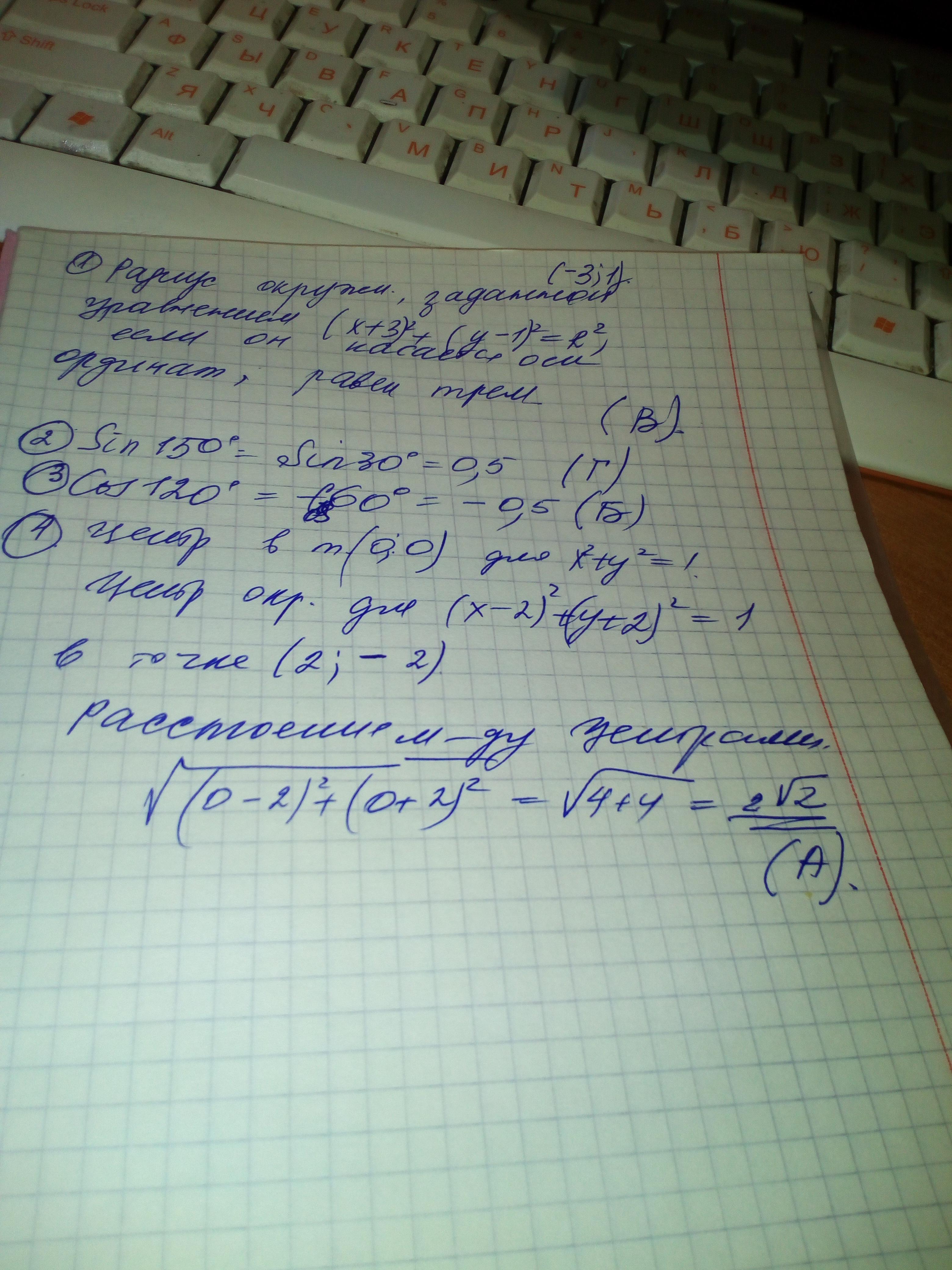 4) Центр окружности х²+у²=1 находится в точке О(0,0). Центр окружности (х-2)²+(у+2)²=1 находится в точке С(2,-2) .