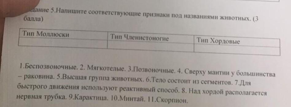 Моллюски: 2, 4, 7, 9