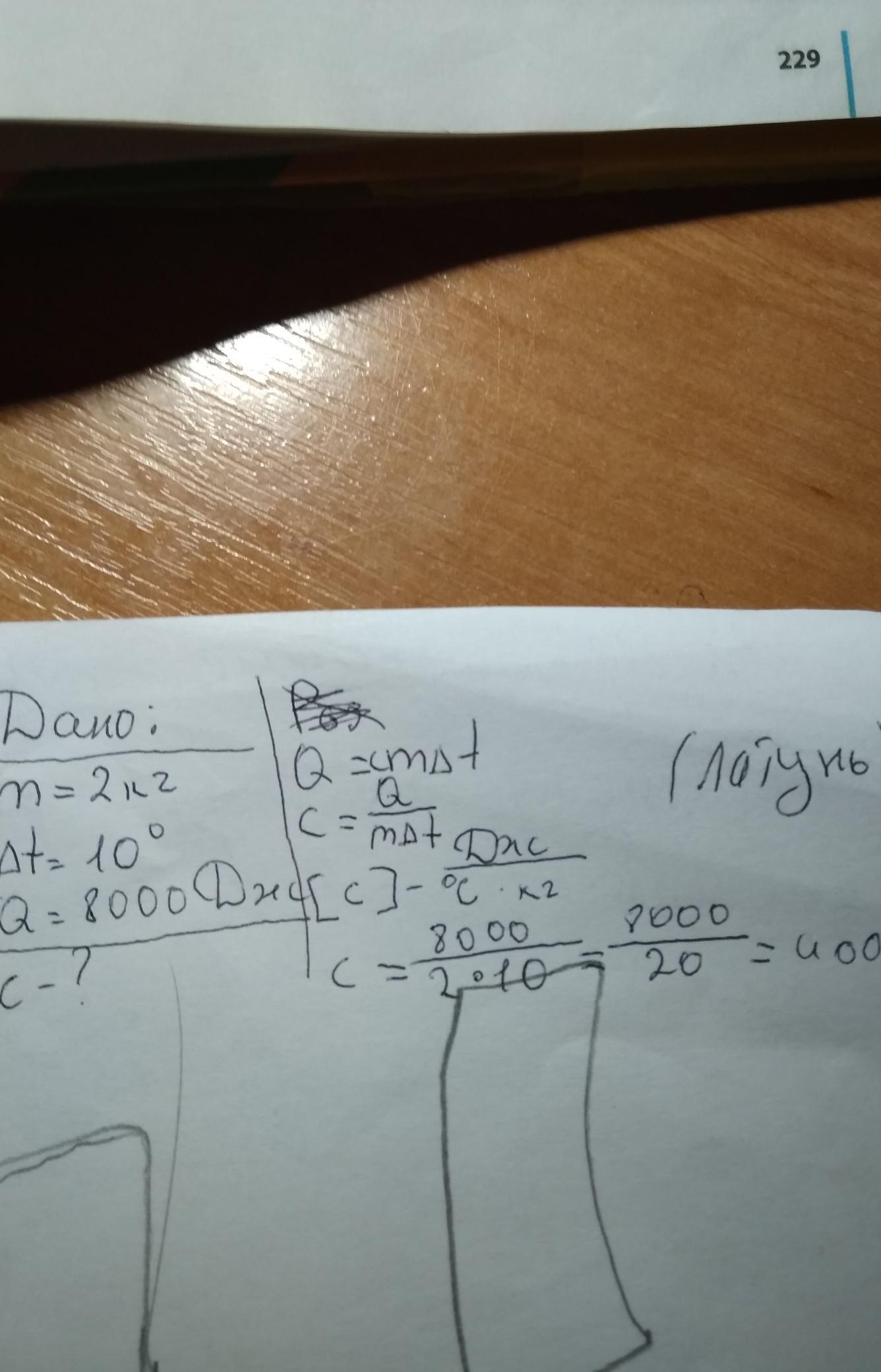 Там же с в квадратных дужках там джоуль на кг и на градусы Вийде 400 дж