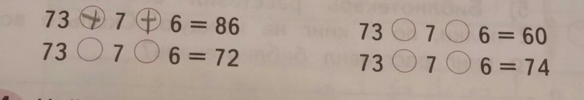 73-7+6=72. 73-7-6=70. 73+7-6=74