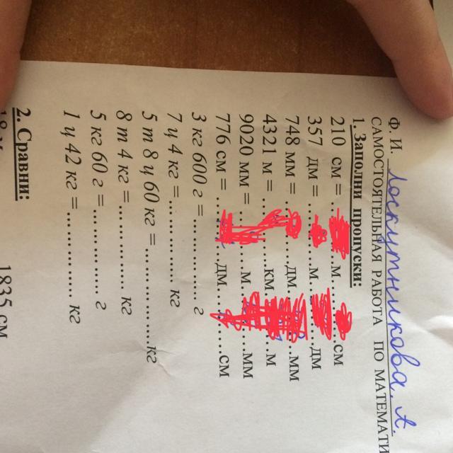 210 см= 2,1м= 210см; 357дм=3570м=357дм