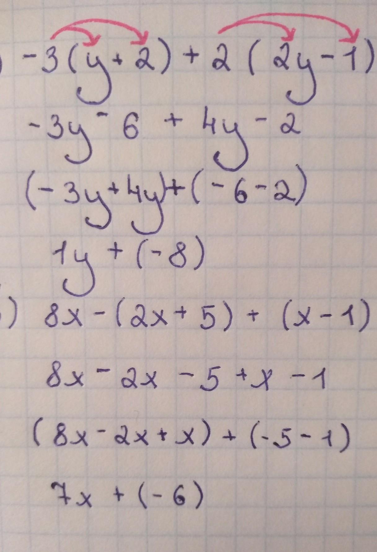 б) 8x-(2x+5)+(x-1)=8x-2x-5+x-1=7x-6