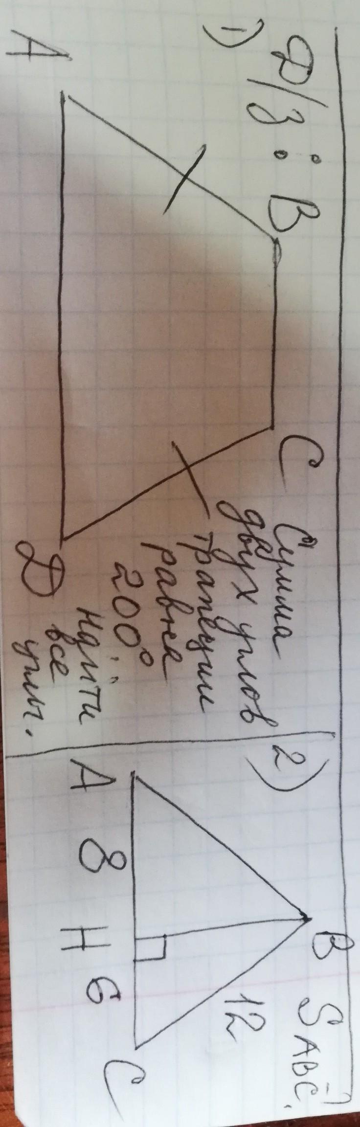 1) Так как трапеция равнобедренная то у основания углы равны. По условия сумма двух углов равна 200. Значит один угол у основания равен 100.