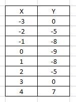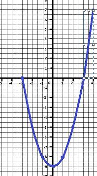 функция задана формулой y = x^2 - 9, где -3 меньше или равно X меньше или равно 4