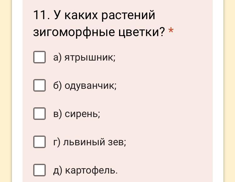 Объяснение: Зигоморфные цветки - это цветок, через который можно провести лишь одну плоскость симметрии, делящую его на две части. (Симметричность устанавливают по околоцветнику без учета расположения внутренних его частей.)