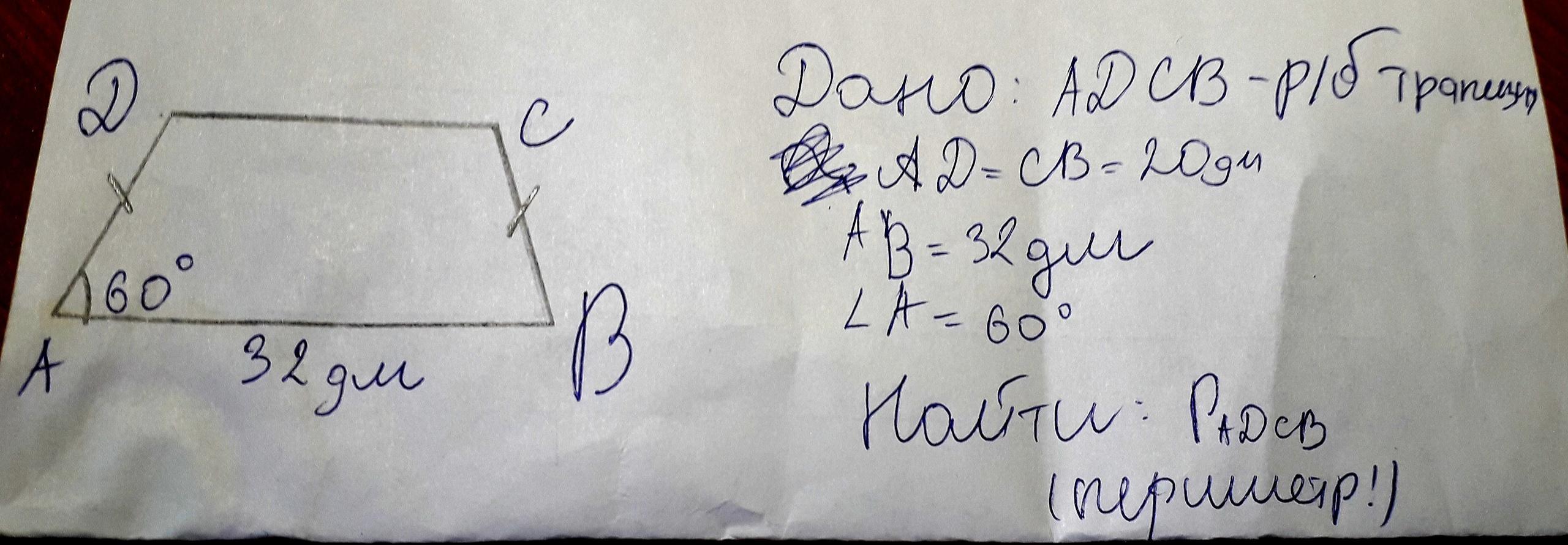 DC=AB=32 дм по свойству трапеции.