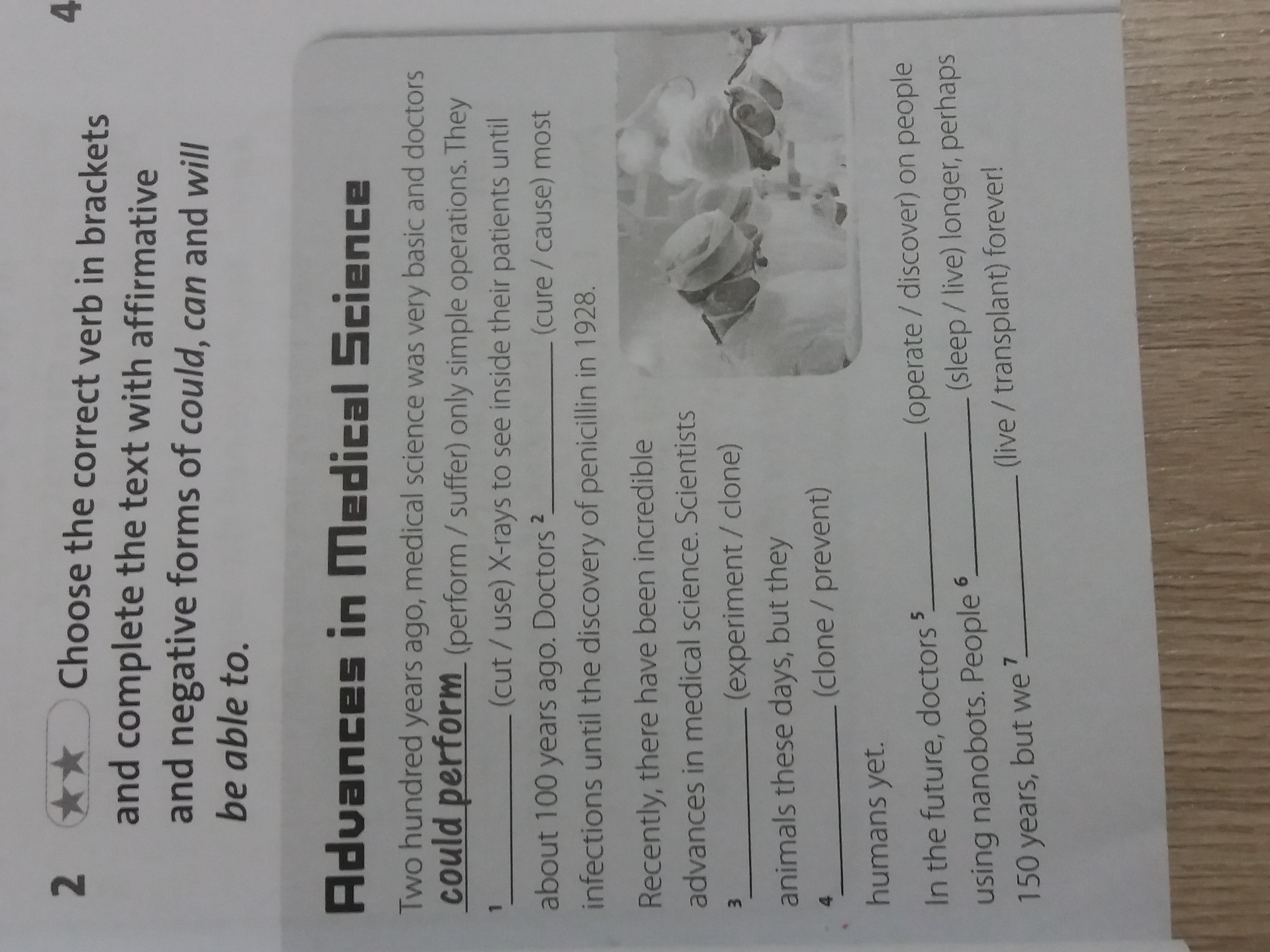 2.could use 3.will experiment 4.will clone 5.can discover 6. be able to live 7.will live