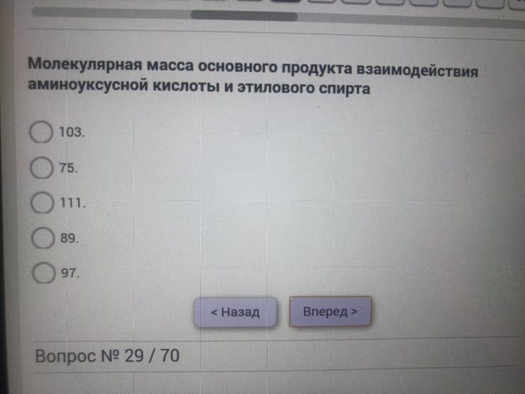 молекулярная масса основного продукта взаимодействия аминоуксусной кислоты и этилового спирта