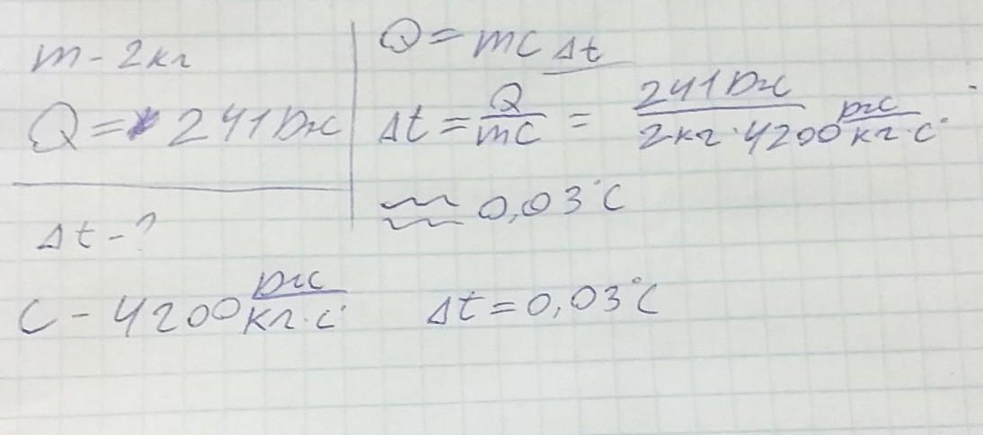241 Дж. Удельная теплоёмкость воды равна 4200 Дж/(кг:°С), плотность воды — 1000 кг/м3 ОТВЕТ ОКУРГЛИТЕ ДО СОТЫХ