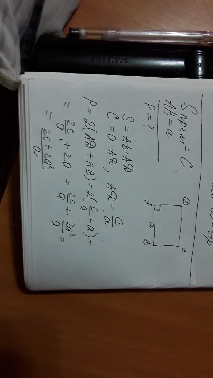 Площадь прямоугольника равна С его основание а Составьте выражение для числа для вычисления примета прямоугольника