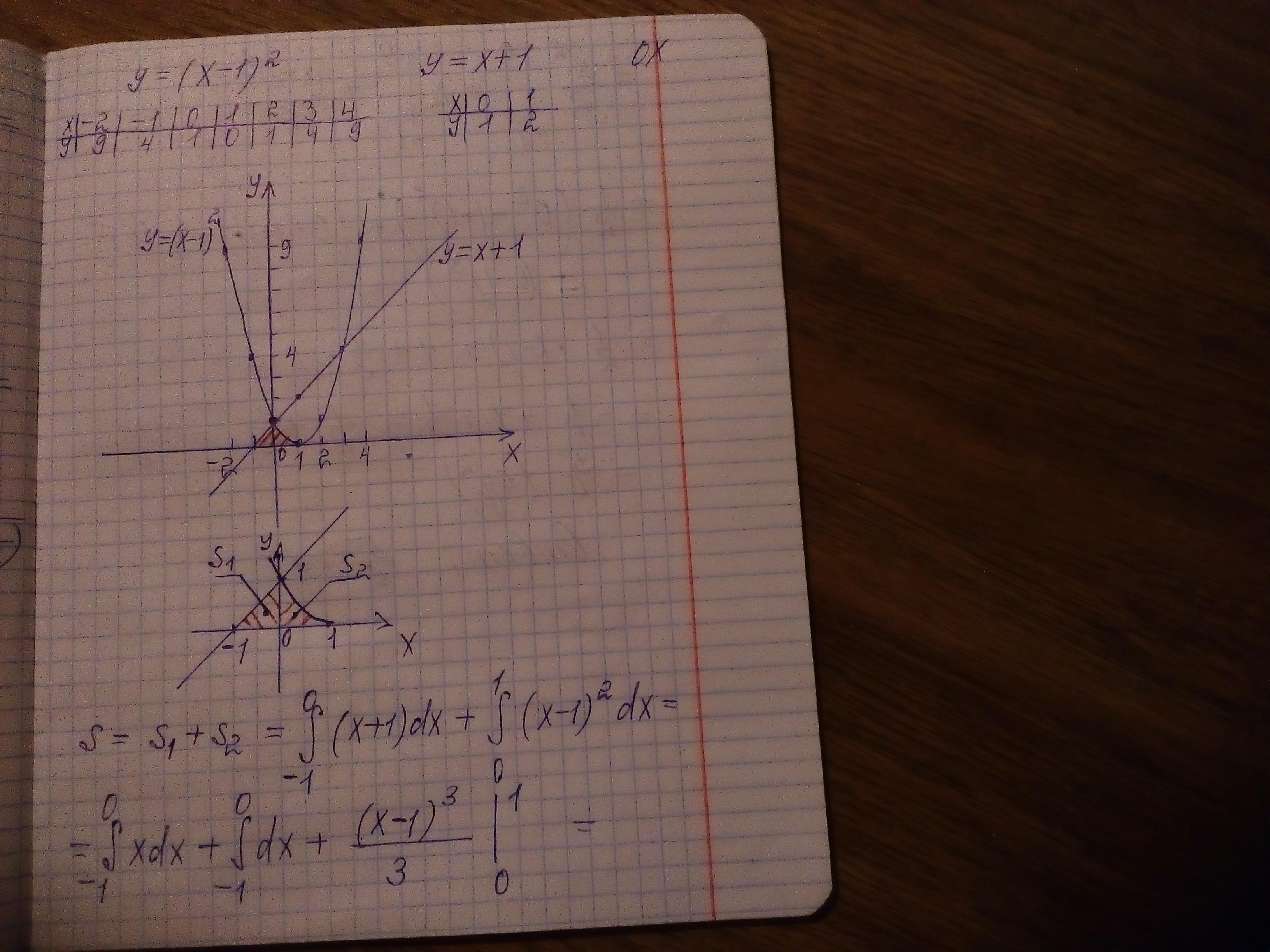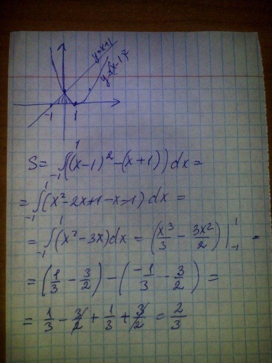 пораболой y=(x-1) в квадрате,прямой y=x+1 и осью Ox,плизззззззззззззззз с решением