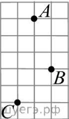 BC является диагональю квадрата 2х2 и поэтому середина отрезка BC находится в точке пересечения диагоналей. Точка А находится в одной вертикальной прямой с точкой пересечения диагоналей. Остается считать клетки.
