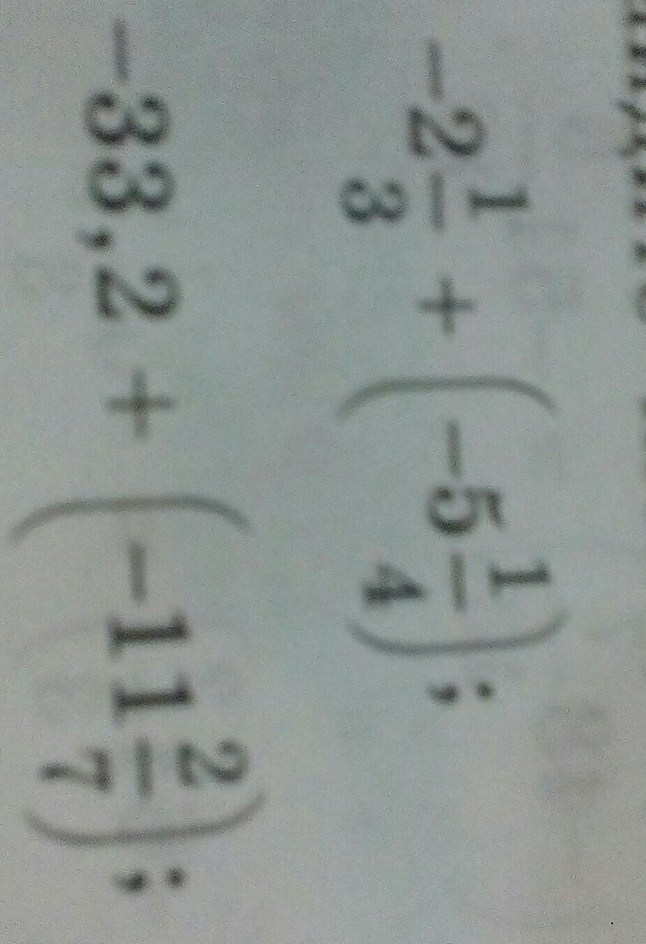 -2¹/₃+(-5¹/₄)=(-7/3)+(-21/4)=-(7*4+21*3)/12=-(28+63)/12=-91/12.