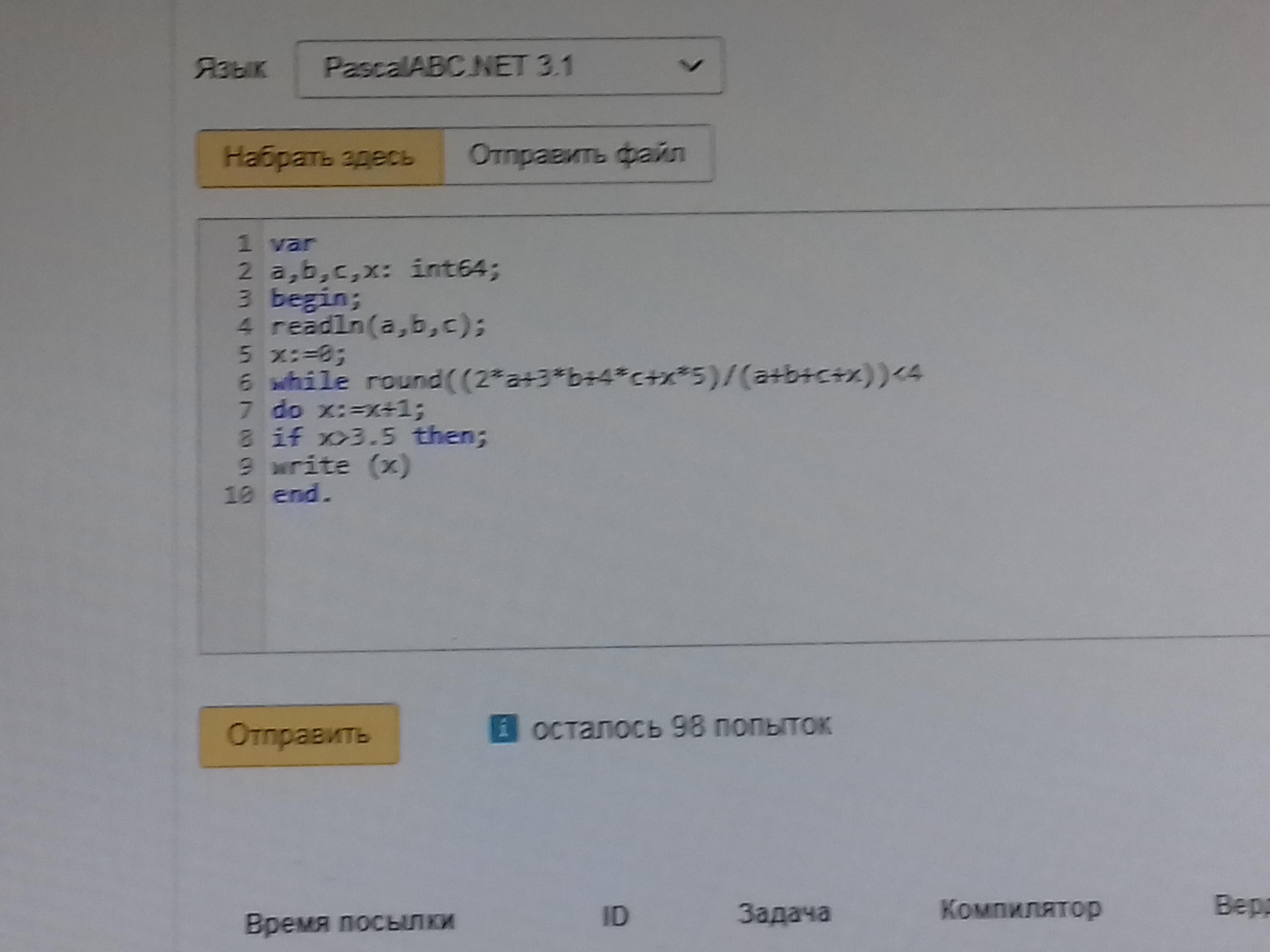Вася стремится получить итоговую оценку по информатике не ниже 4 баллов. К сожалению, он получил на уроках X двоек, Y троек и Z четверок. Теперь Вася планирует получить несколько пятерок. Причем он хочет, чтобы итоговая оценка была не меньше 4 баллов. Ему надо понять, какое минимальное количество пятерок ему необходимо получить, чтобы добиться своей цели. Помогите Васи написав программу, которая по заданным целым неотрицательные числам a, b и c определяет минимальное количество пятерок, которое необходимо получить Василию, чтобы его итоговая оценка по информатике была не меньше 4 баллов.
