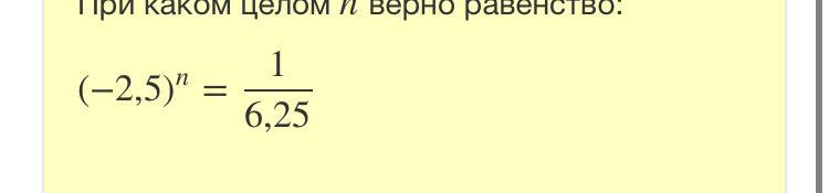 n=-2 так как при возведение в 2 степень ответ будет 6,25, но при возведение в - 2 степень дробь перевернётся.