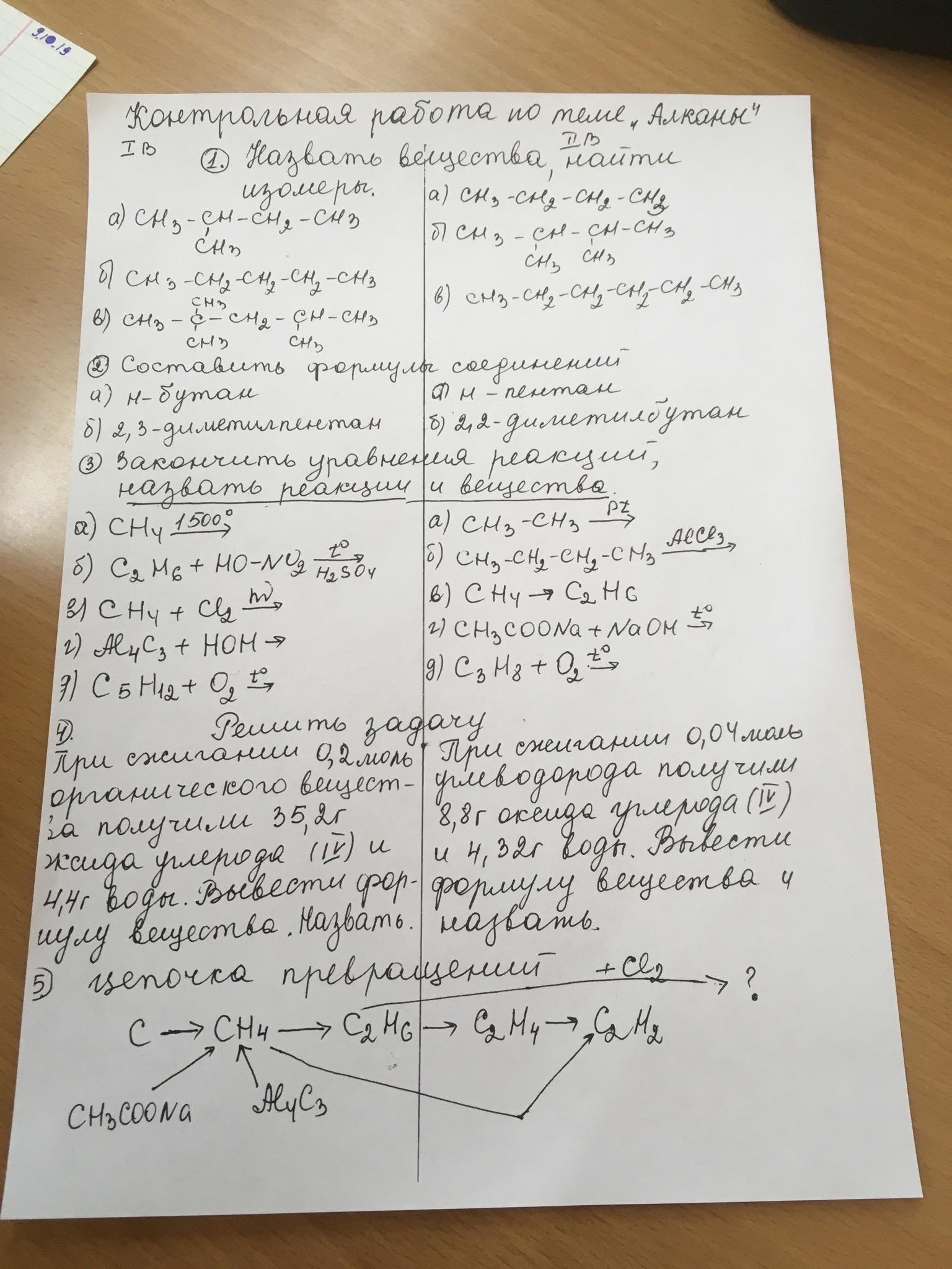 2) CH4 + Cl2 (hv)= CH3Cl + HCl