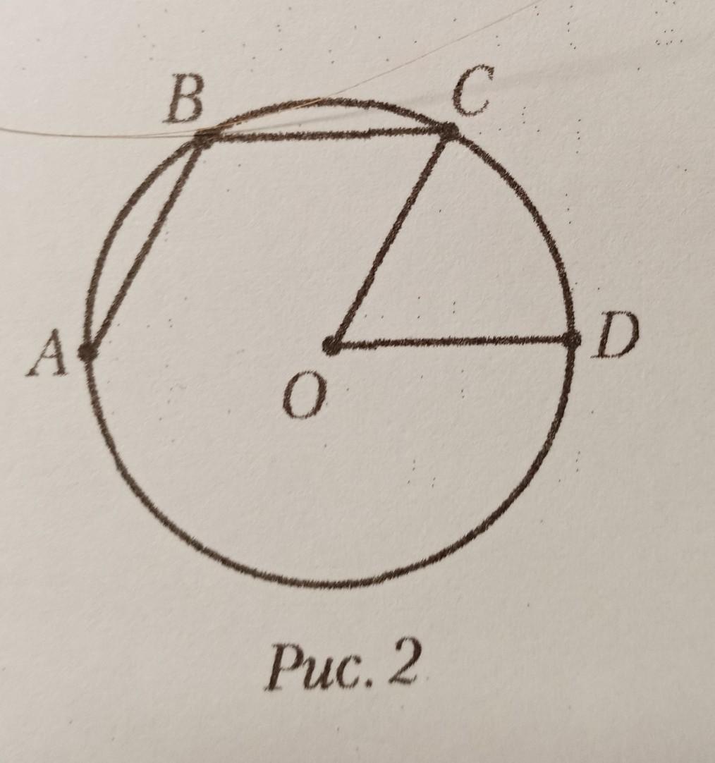 на рисунке 2 хорды AB и BC равны радиусы окружности с центром О. Длина ломаной ABCOD равна 42 см. Найдите длину диаметр окружности помогите пожалуйста